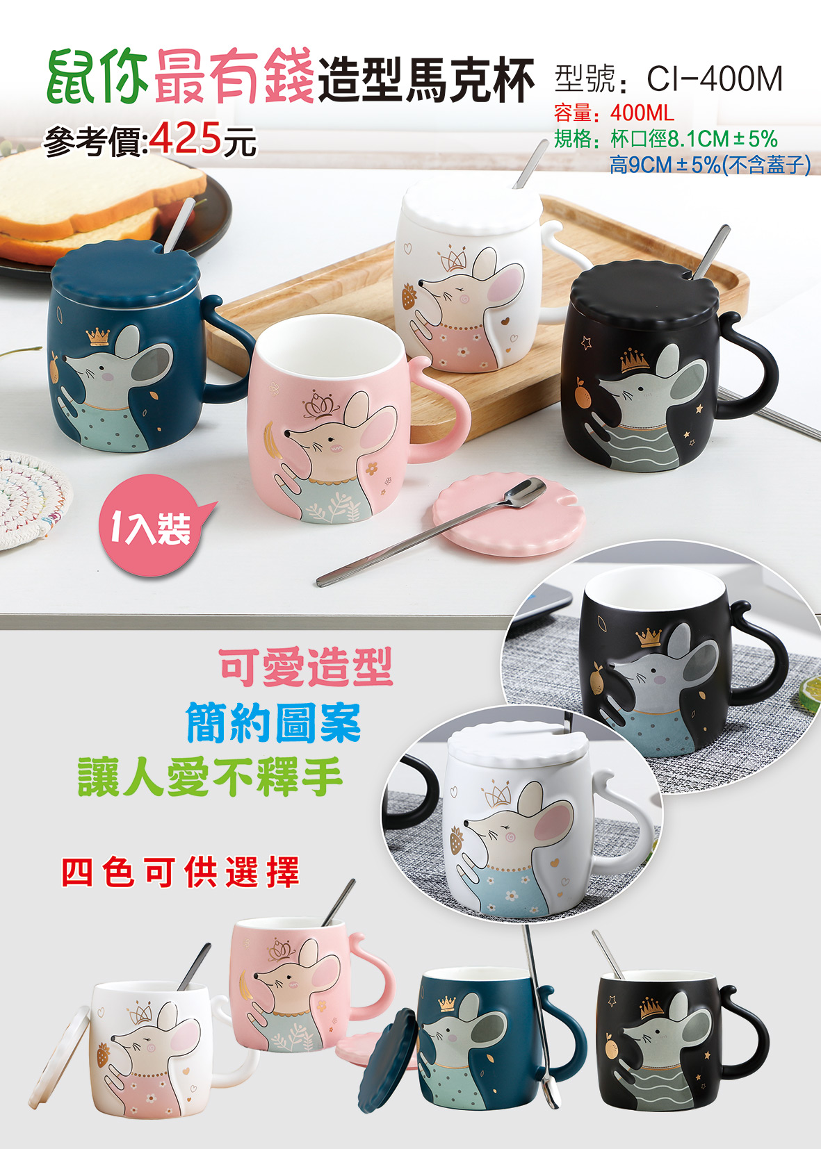 立即購買 CI-400M鼠你最有錢錢鼠馬克杯(共四色)