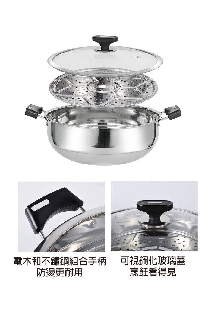 CI-4.3B+2.1B SUS304不锈鋼多功能萬用調理鍋組