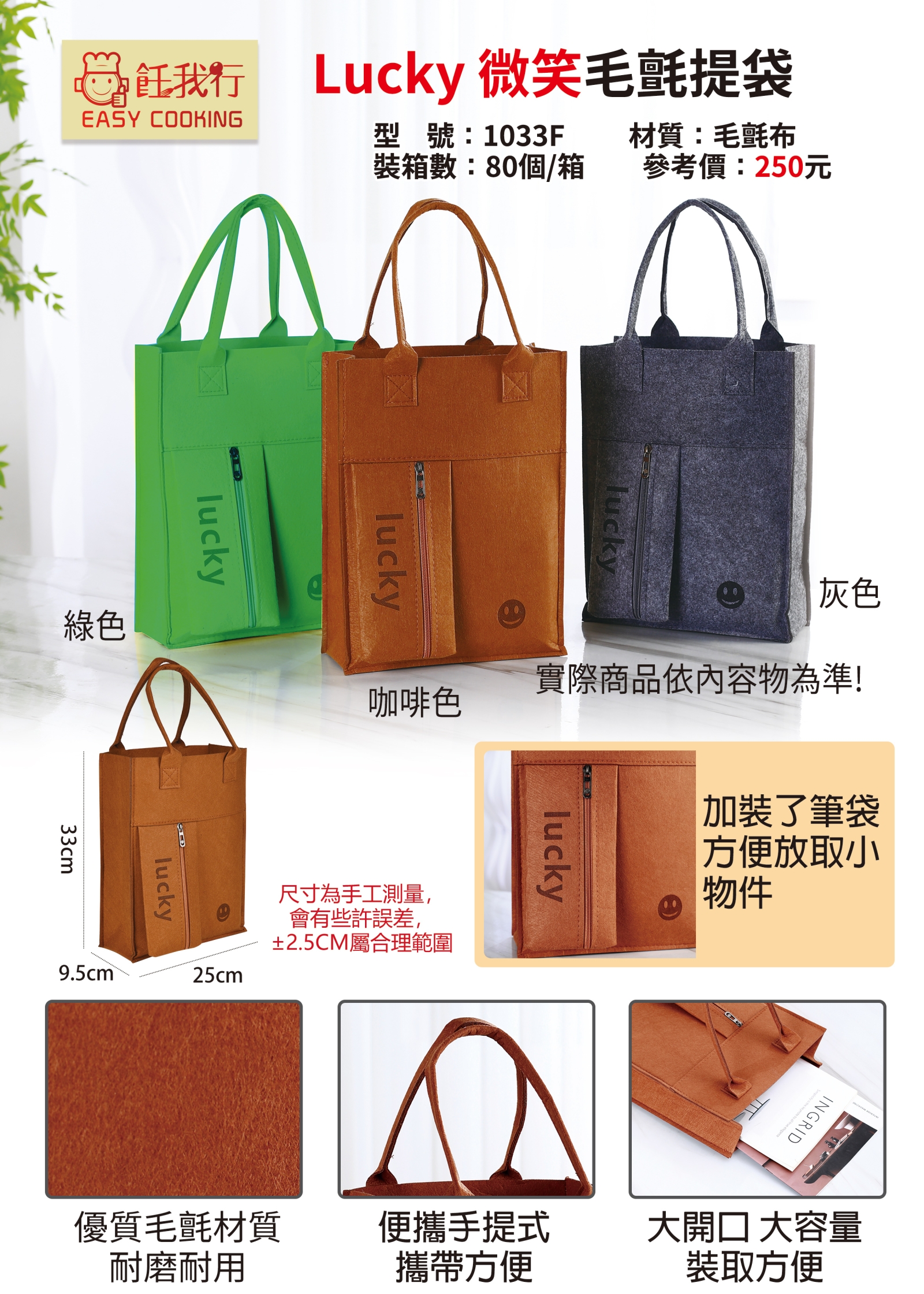 立即購買 1033F LUCKY微笑毛氈提袋