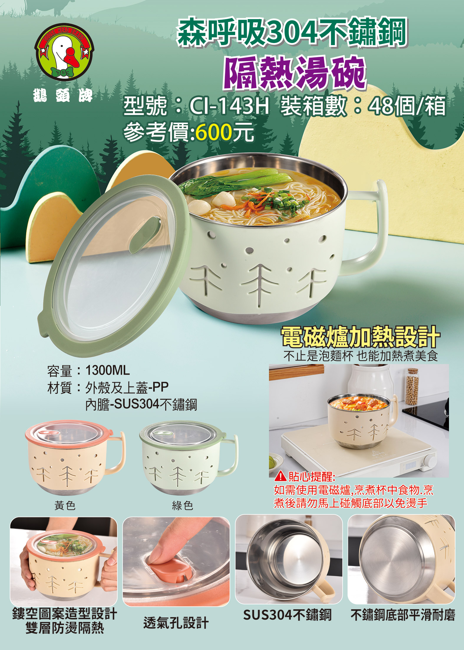 立即購買 CI-143H森呼吸304不鏽鋼隔熱湯碗